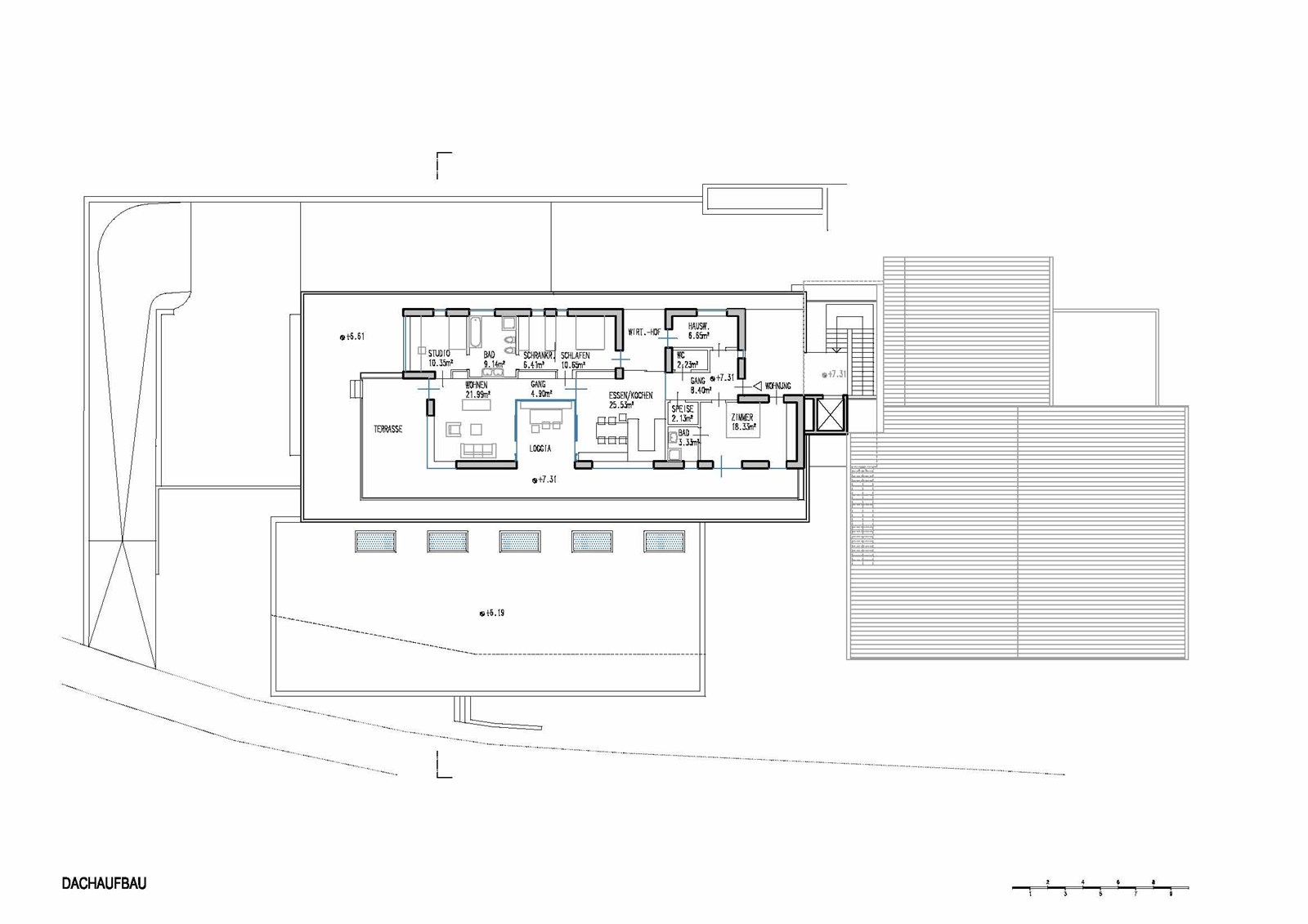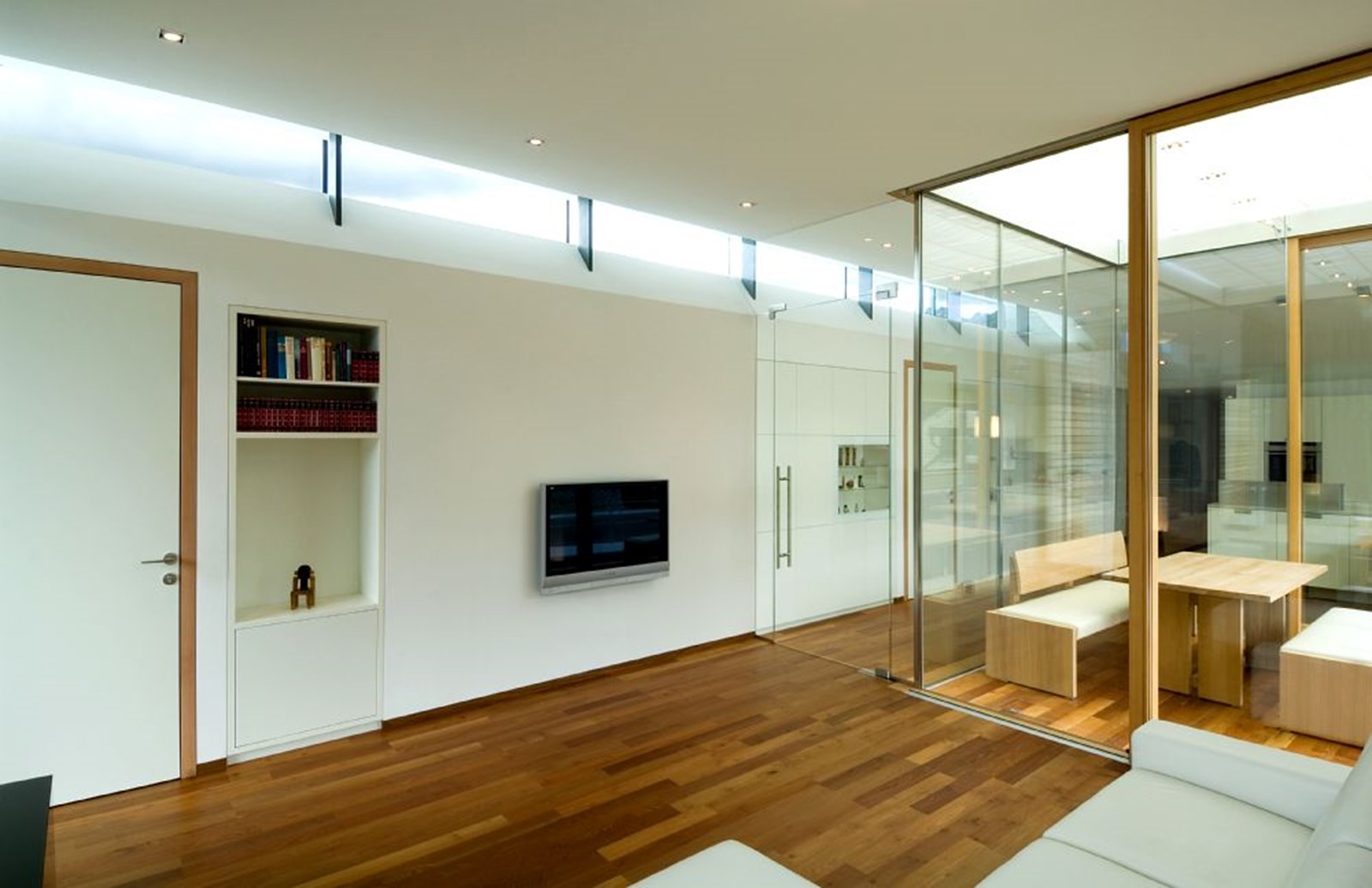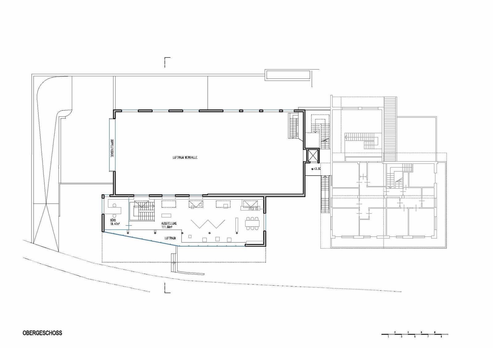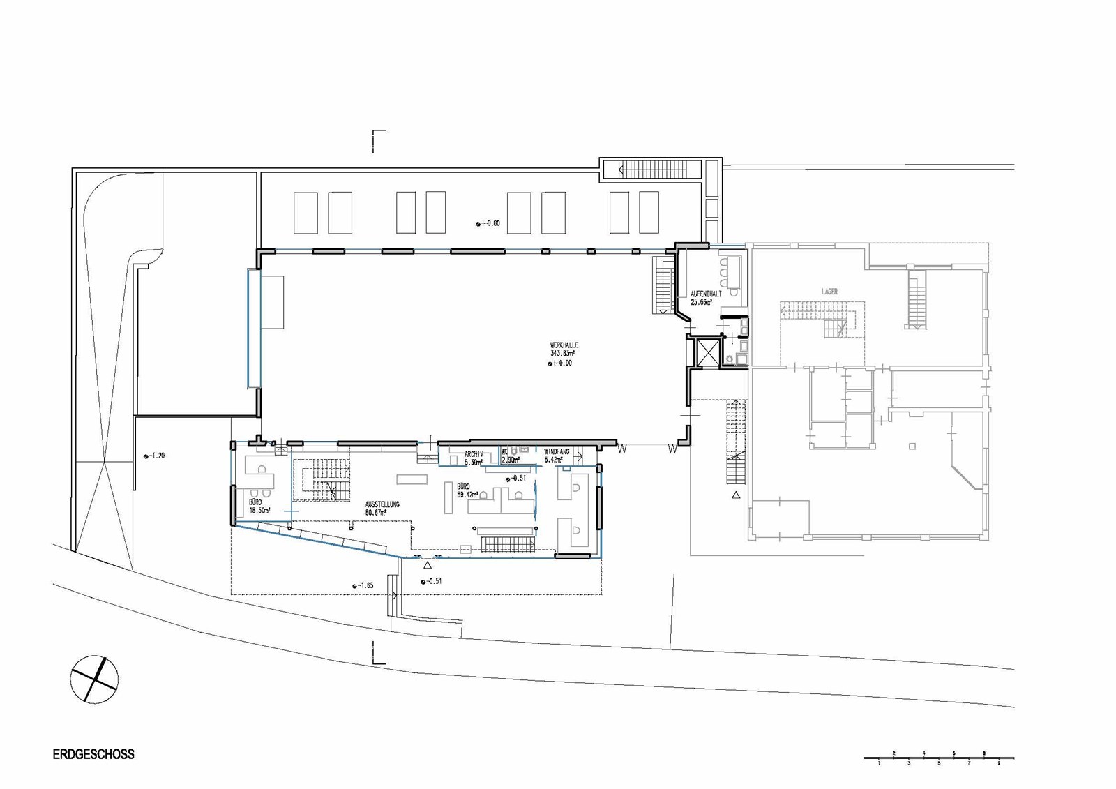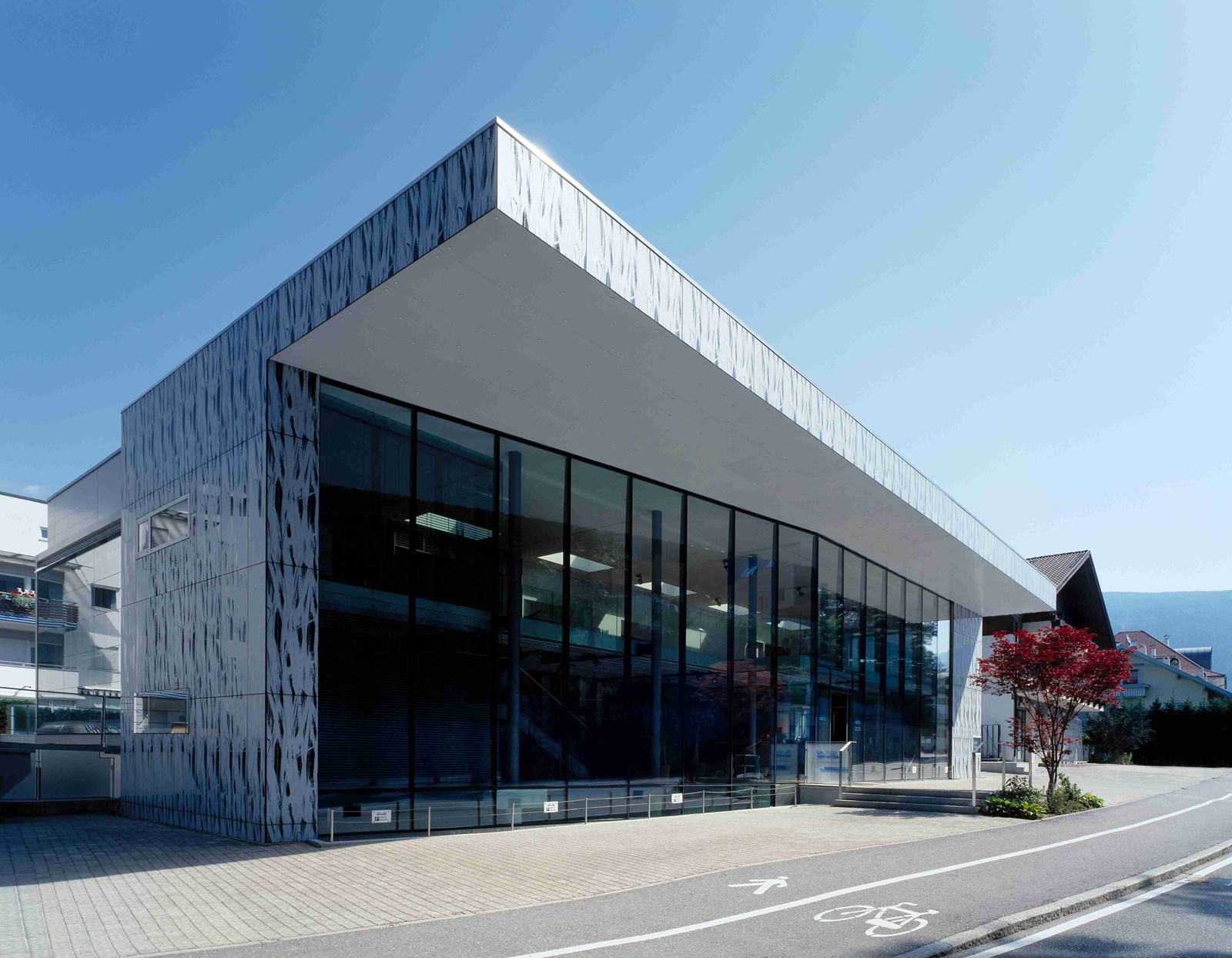 Ab 2002 wurde der Sitz von Seyr Glasbau in vier Bauabschnitten umgebaut und erweitert, während der Betrieb weiterlief. Zuerst wurden Werk- und Lagerräume im Untergeschoss vergrößert und mit neuer Rampe erschlossen, dann Werkhalle verdoppelt und Verwaltungstrakt neu gebaut. Nach Übersiedlung in die erweiterten Bereiche folgten Abbruch alter Verwaltungsteile und ein neues Treppenhaus mit Aufzug. Schließlich entstand über der Halle eine Betriebswohnung in Holzbauweise als Niedrigenergiehaus, abgeschlossen 2008. Das Gebäude an der Stegenerstraße gliedert sich in drei Baukörper: kristalliner Verwaltungs- und Ausstellungstrakt zur Straße, dahinterliegende Werkhalle mit abgesenktem Werkhof und die aufgesetzte Wohnung. Ein verglastes Treppenhaus verbindet alle Teile. Die Fassade, gestaltet mit Wilma Kammerer, kombiniert sechs Meter hohe Siebdruckverglasung, silberne Stahlpaneele und Swisspearl/ Lärche an der Wohnung. Innen prägt ein kräftiger orangefarbener Linoleumboden das Farbkonzept, ergänzt durch MDF-Möbel, Glaswände und hochwertige Einrichtung. Hochwertige Dämmung und Verglasung sichern hohe energetische Standards, die Wohnung nach Klimahaus B zertifiziert.