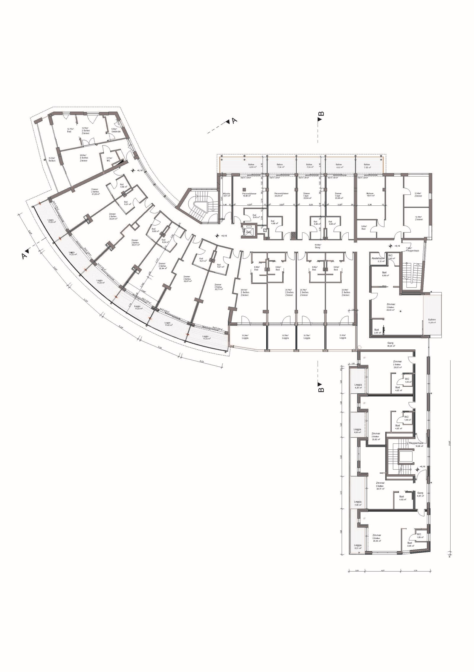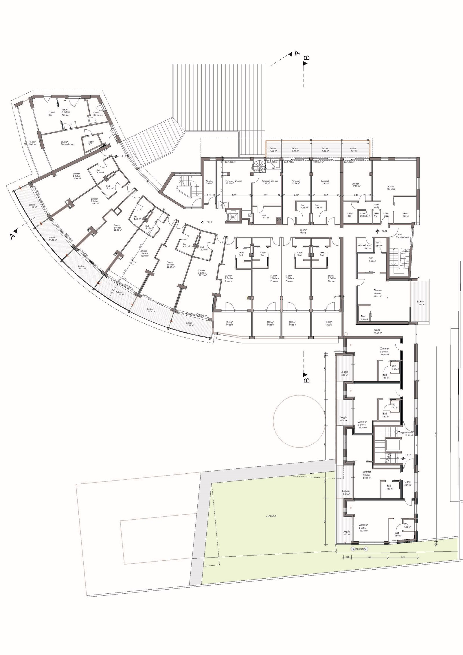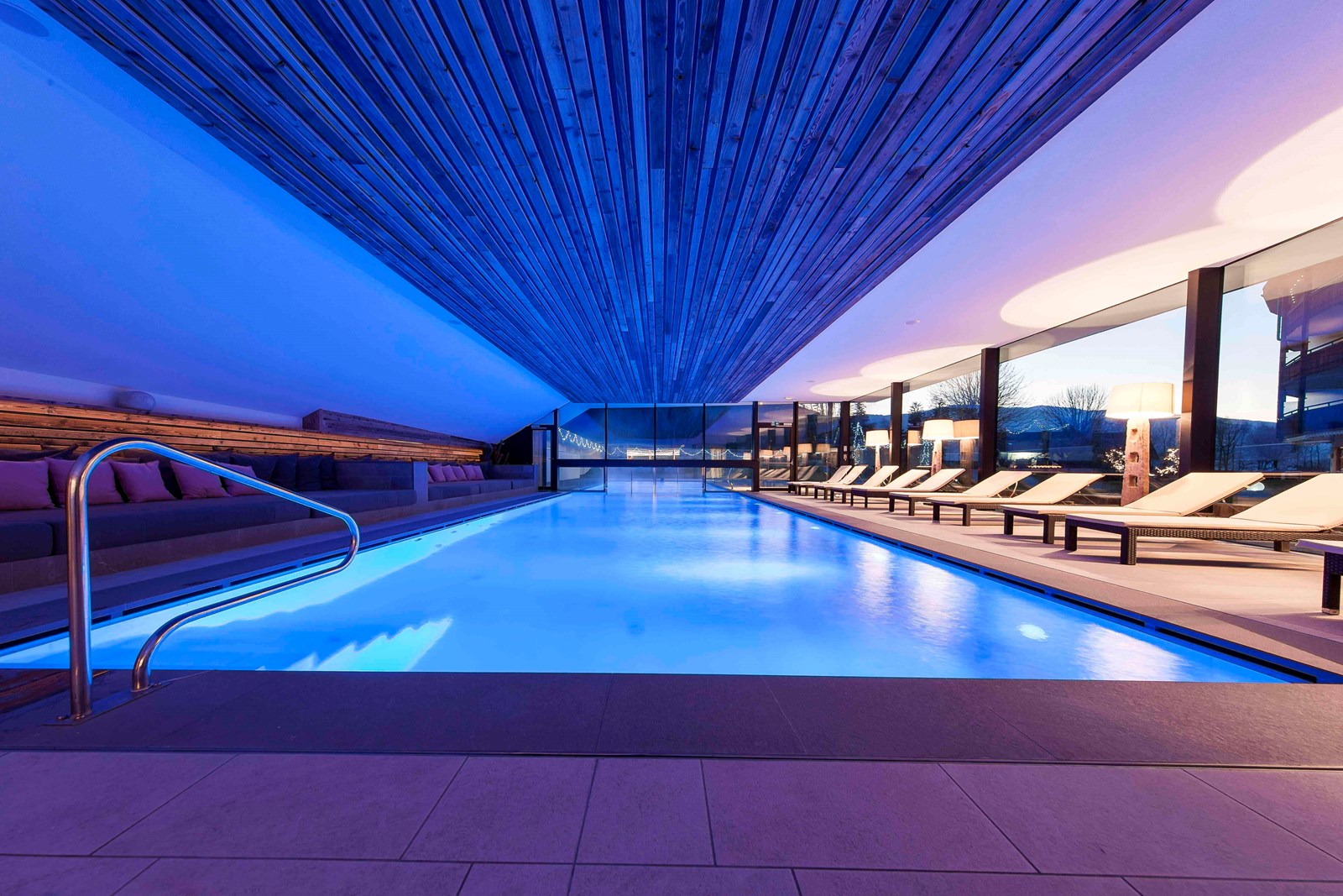 Im Erdgeschoss schließt der neue Baukörper L-förmig an den Bestand an, während das Untergeschoss durch einen großzügigen Innenhof als vollwertiger Wellnessbereich nutzbar wird. Die Obergeschosse mit den Suiten fügen sich linear an den Bestand an und schaffen so eine klare, elegante Gliederung des Gebäudes. Das Zusammenspiel von Bestandsgebäude, Erweiterung und Umgebung vermittelt Ruhe, Ordnung und Großzügigkeit – die Architektur öffnet sich der Landschaft, ohne ihre stimmige, kompakte Form zu verlieren.