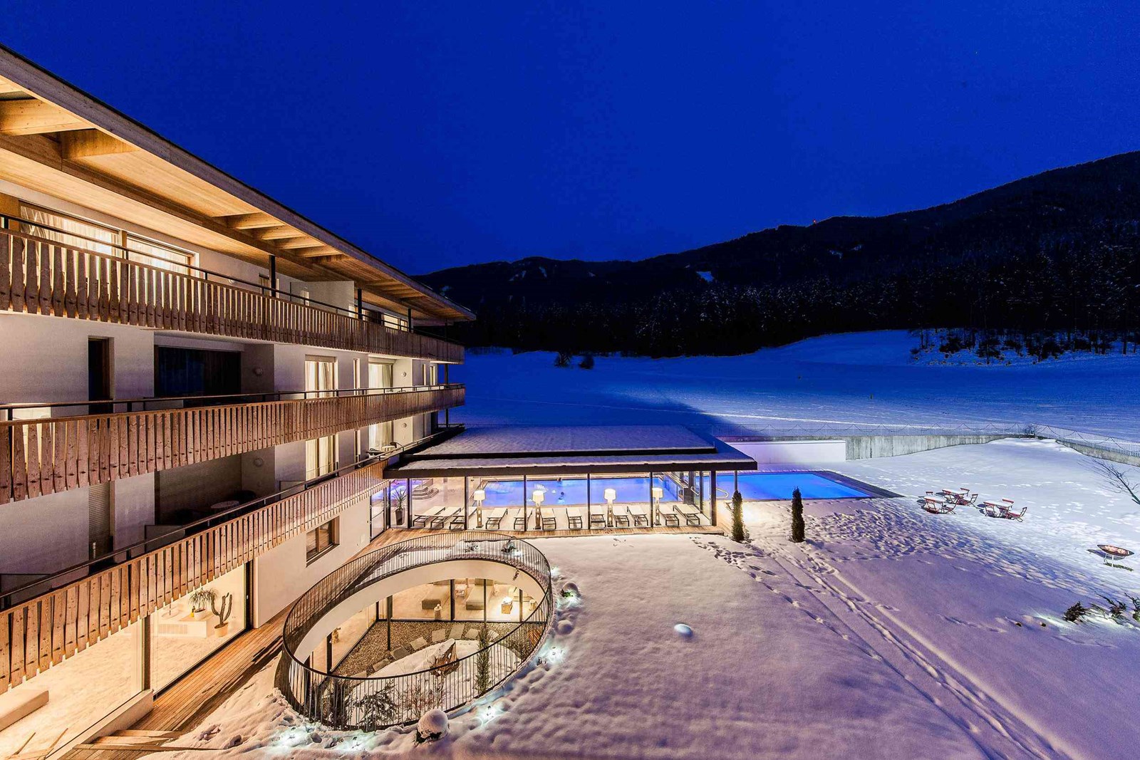 Das Hotel Petrus stellte aufgrund seiner Lage inmitten einer ländlichen Umgebung eine besondere architektonische Herausforderung dar. Nach Abbruch, Wiederaufbau und einer großzügigen Erweiterung, bei der die Grünflächen bewusst vergrößert wurden, galt es, ein harmonisches und einheitliches Erscheinungsbild zu schaffen. Wie viele Hotels im Alpenraum war auch dieses Gebäude über mehrere Bauphasen hinweg gewachsen und musste nun funktional und gestalterisch neu zusammengeführt werden.