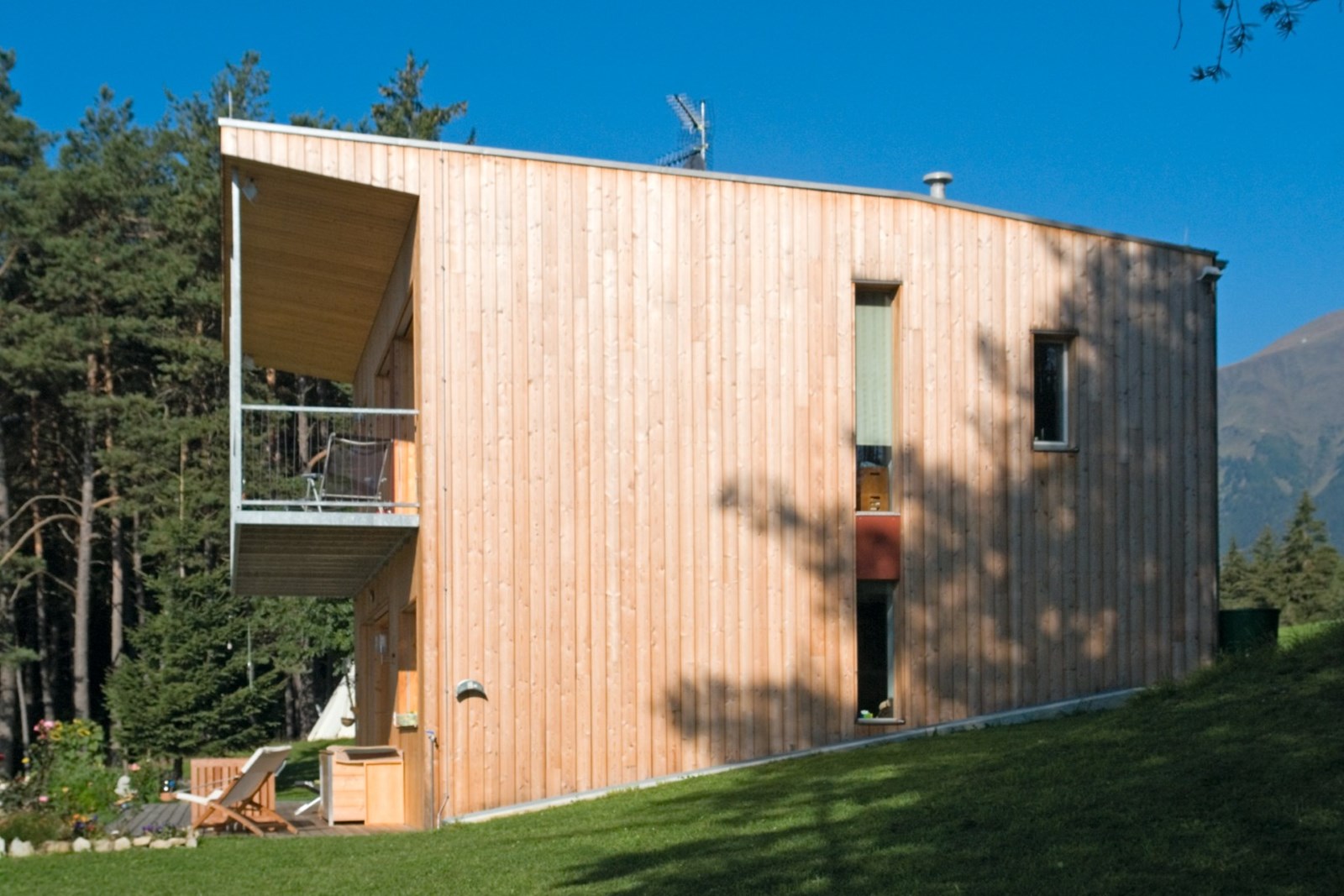 Auf 1200 m am Sonnenhang über dem Pustertal errichtete eine junge Familie mit zwei Kindern ein kleines, kostengünstiges und energieeffizientes Holzhaus, das ihnen Unabhängigkeit von steigenden Ölpreisen und Energiepreisen bietet. Das leicht nach Süden abfallende Grundstück öffnet sich mit freier Sicht nach Süden und Gebirgsblick nach Norden. Als Passivhaus konzipiert, kommt das Gebäude ohne klassische Heizsysteme aus. Entscheidend waren präzise Planung, sorgfältige Umsetzung und eine luftdichte, wärmebrückenfreie Hülle. Die Arbeiten begannen im Oktober, der Einzug erfolgte im April. Dank kompakter Wärmepumpe und kontrollierter Lüftung erreicht das Haus einen Energieverbrauch von nur 8 kWh/m²a, etwa ein Liter Heizöl pro Quadratmeter, insgesamt 118 Liter pro Jahr für Heizung und Warmwasser. So entstand ein komfortables, wirtschaftliches und nachhaltiges Zuhause, das der Familie langfristig Sicherheit und Lebensqualität bietet.